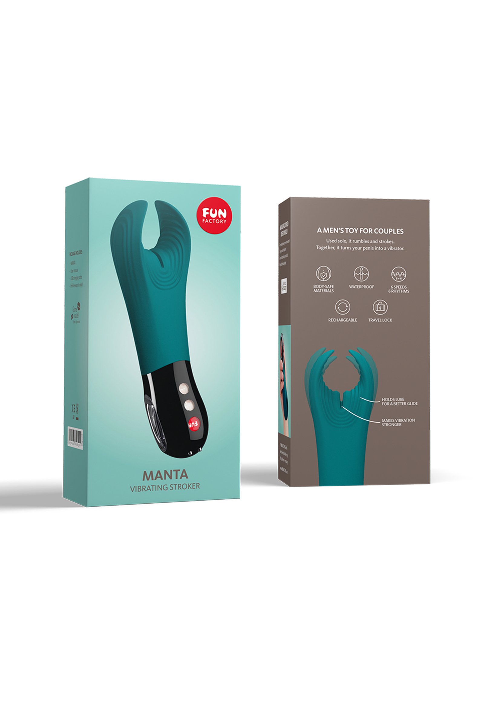 Fun Factory Manta - мужская игрушка для двоих. Выберете удобную позу позволяющую удерживать Manta между вами и оба наслаждайтесь интенсивной вибрацией. Используйте вибратор во время орального секса, дополнительная стимуляция ощущается как глубокий горловой минет с вибрацией! Также Manta идеально подходит для игры соло. Эргономичная форма, гибкие лепестки подстраиваются под любой размер, Бархатистый мягкий и простой в управлении. Рекомендуем использовать до и после применения - дезинфицирующее средство для игрушки, чтобы обеспечить длительное скольжение и комфорт интимных отношений, рекомендуем использовать смазку на водной основе.